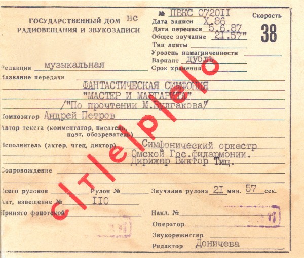 Андрей Петров - Мастер и Маргарита [MB-Rip, Из фондов Государственного Дома радиовещания и звукозаписи] (1986) WavPack